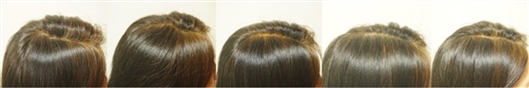 カラートリートメントする前の写真と、トリートメント後の1回目~5回目の写真です。